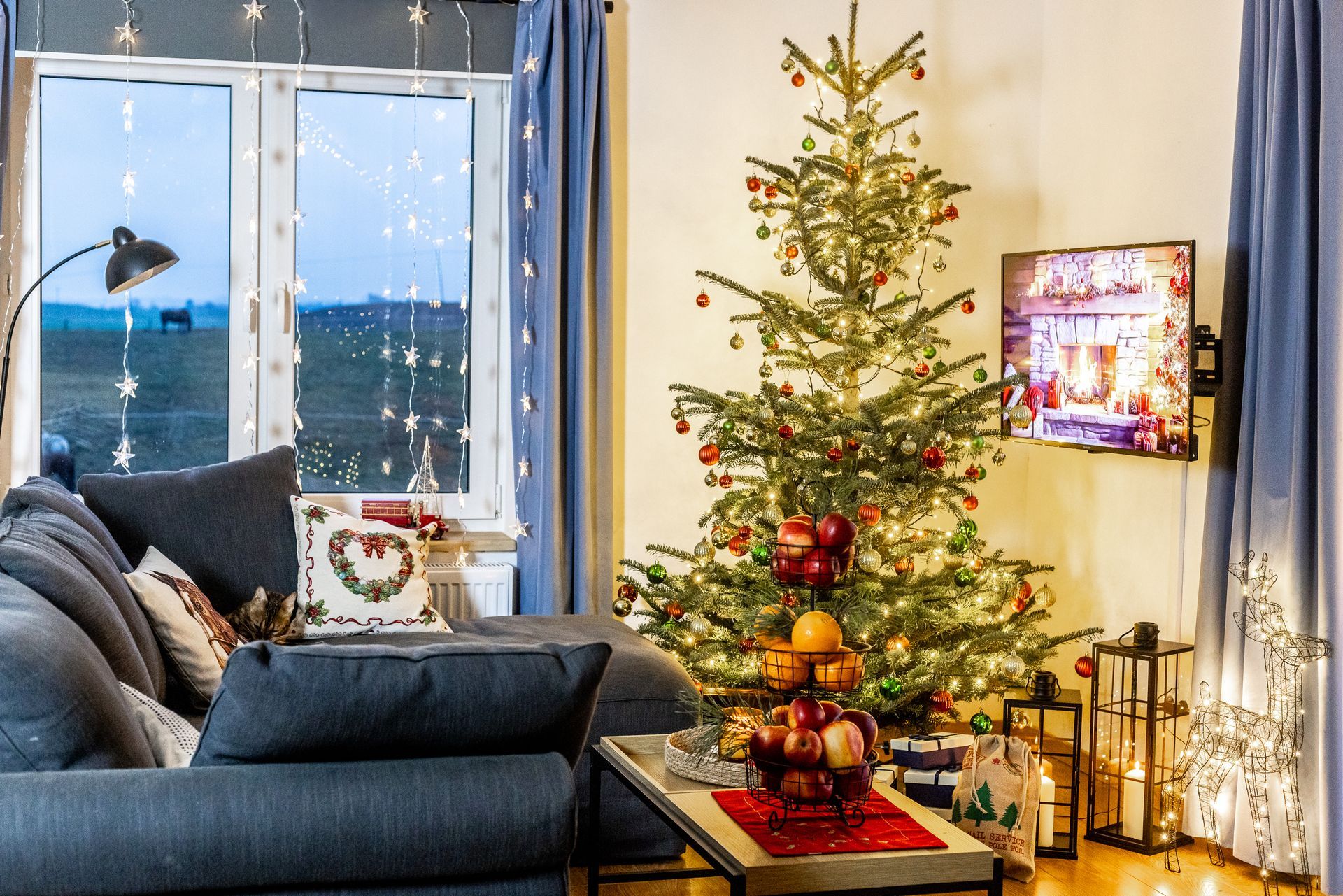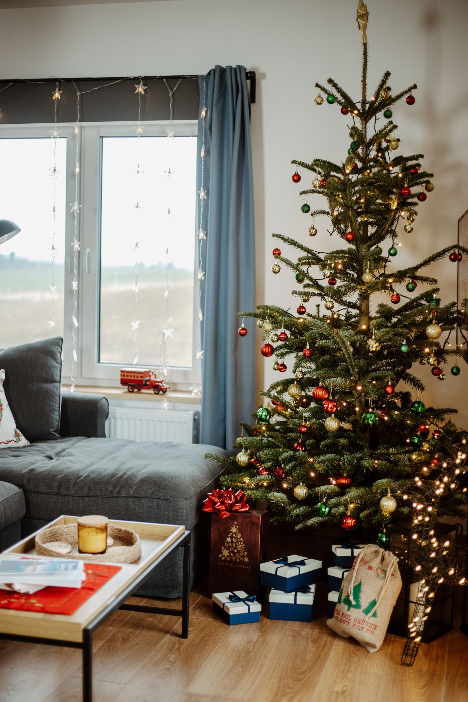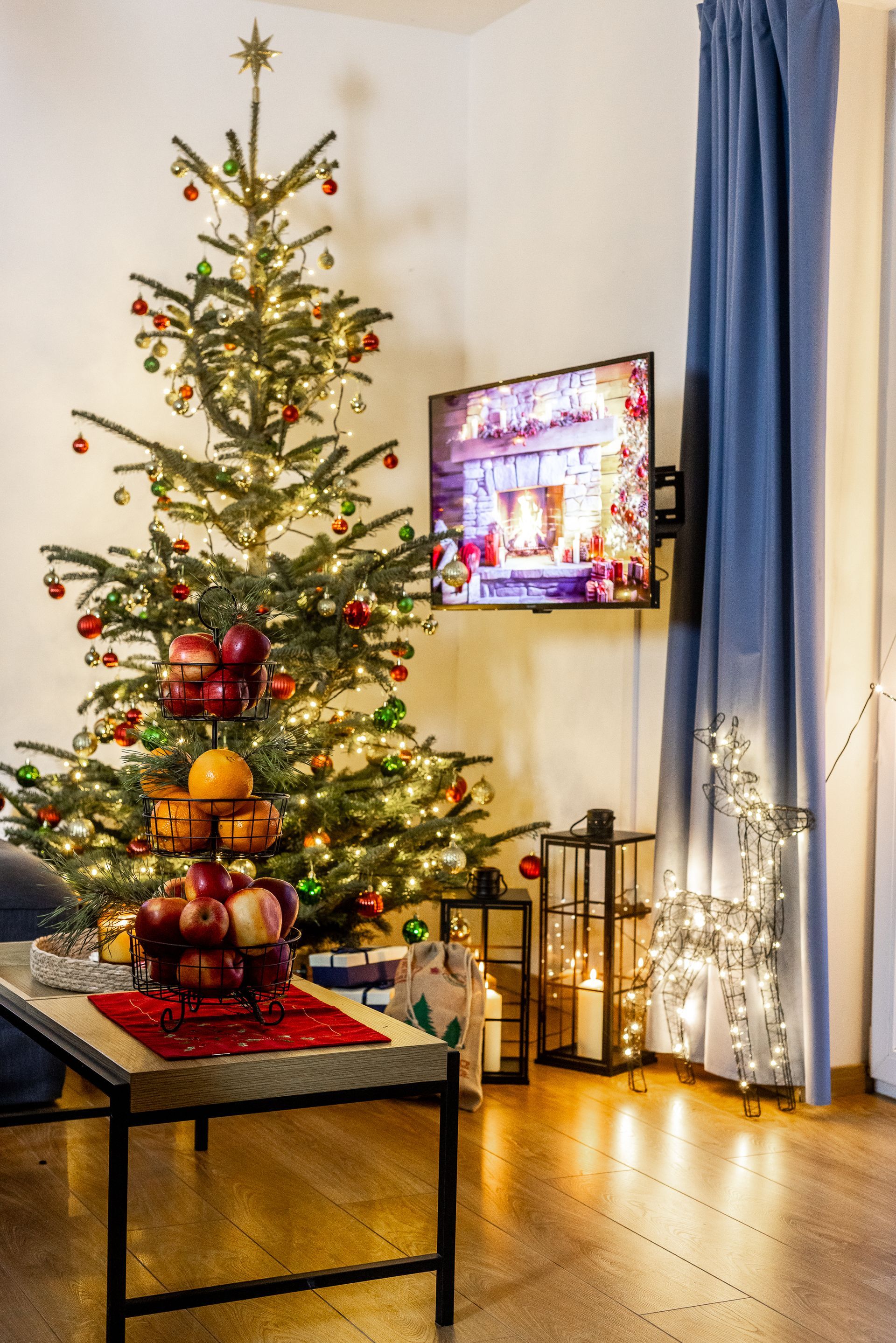 ButtonKażdy apartament udekorowany jest świątecznymi ozdobami, w tym choinką