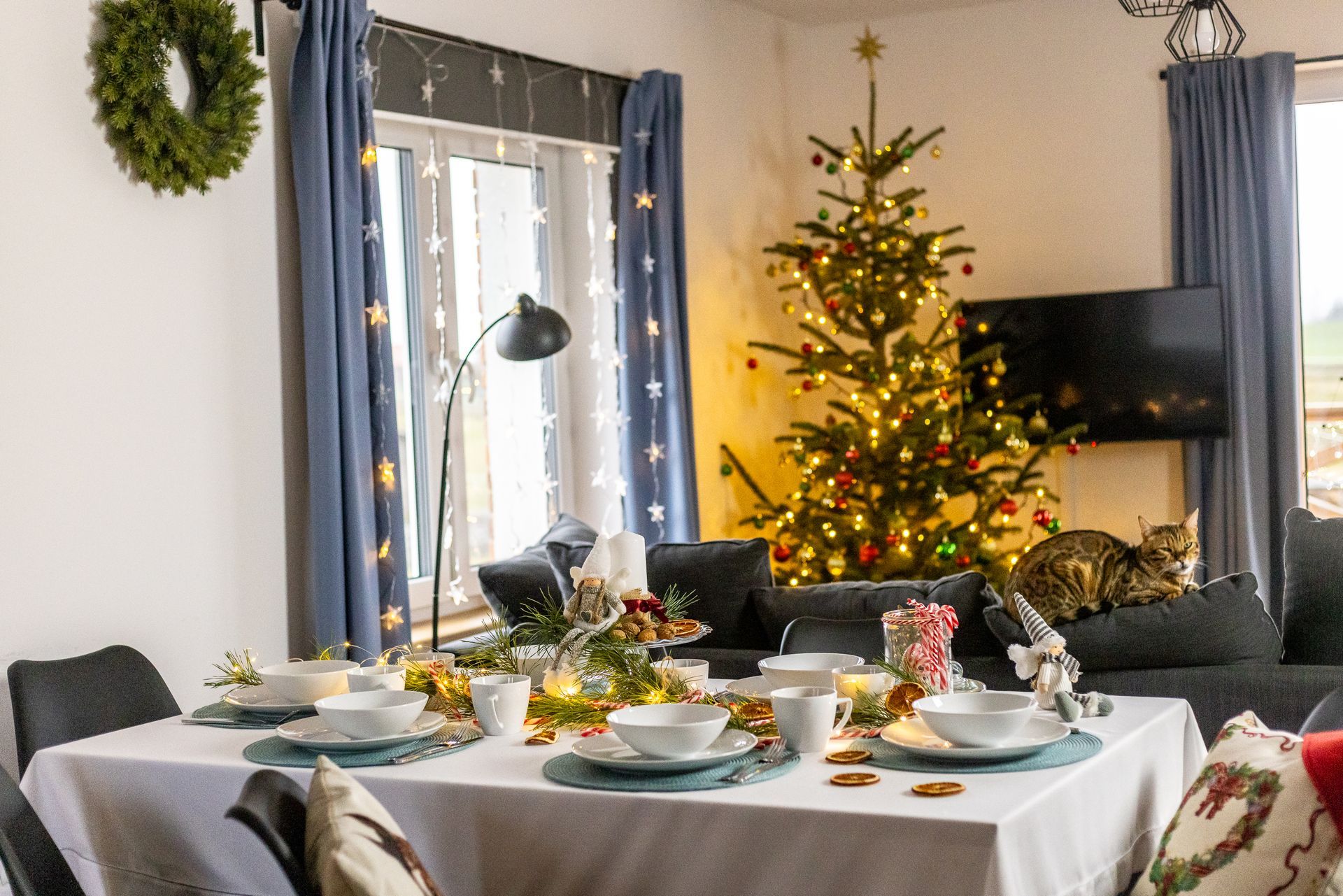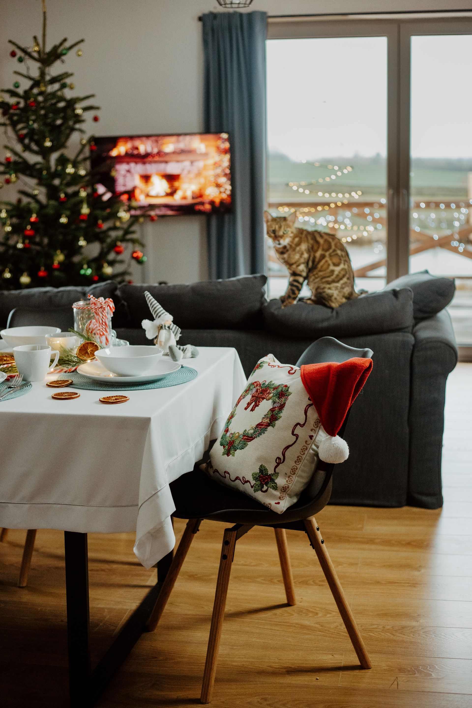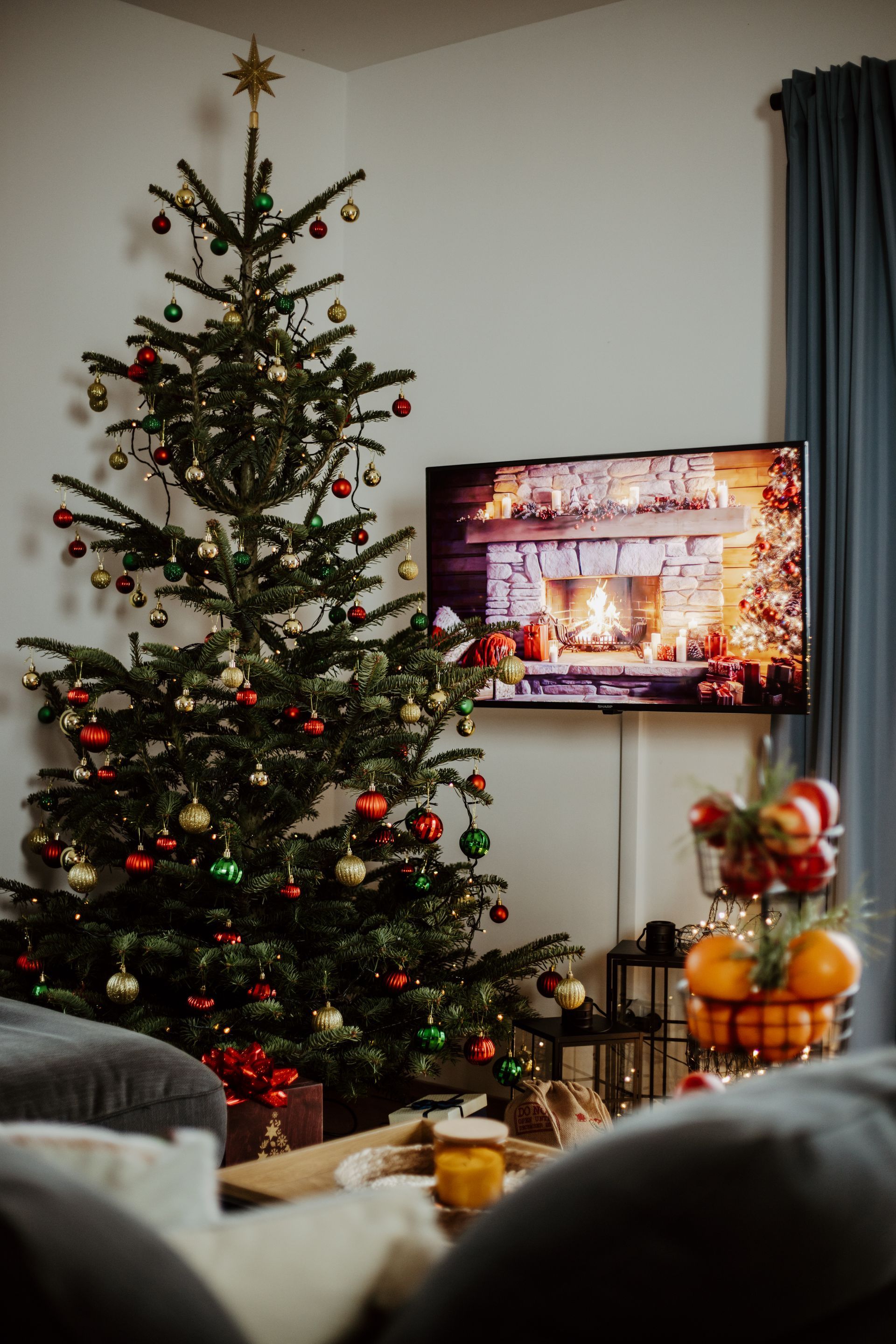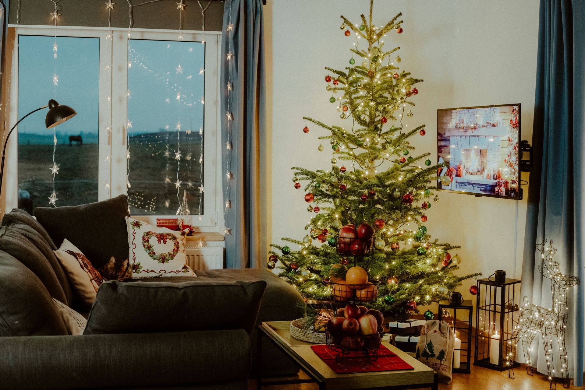 ButtonKażdy apartament udekorowany jest świątecznymi ozdobami, w tym choinką
